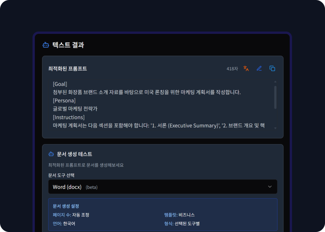 자연어 → 전문가 수준 프롬프트 자동 생성